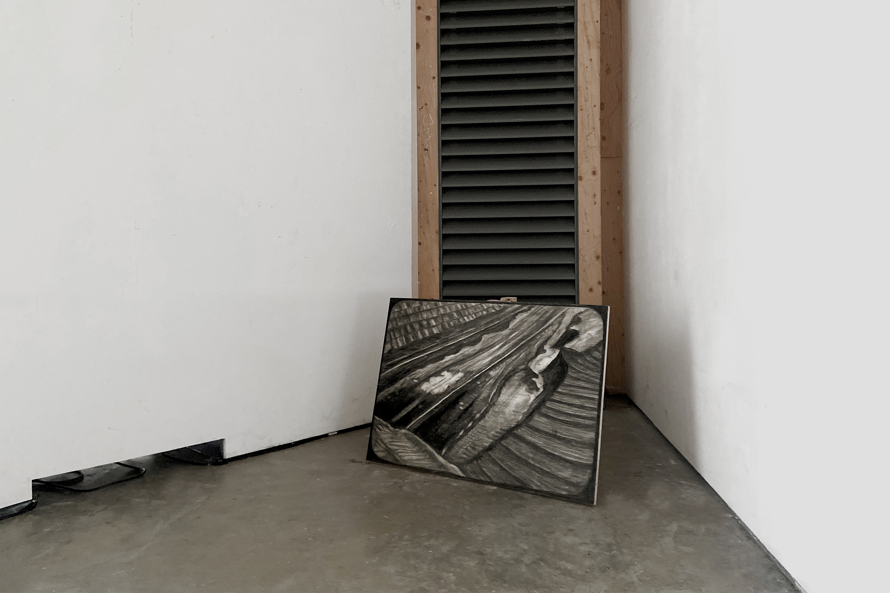 This work comes from my visit to Europe’s largest surface coal mine in Ruhr. It blends different moments in time: when ancient plants grew in this place, when coal was formed under pressure, when the mine began operating, when I witnessed it, and now, as you view this drawing.